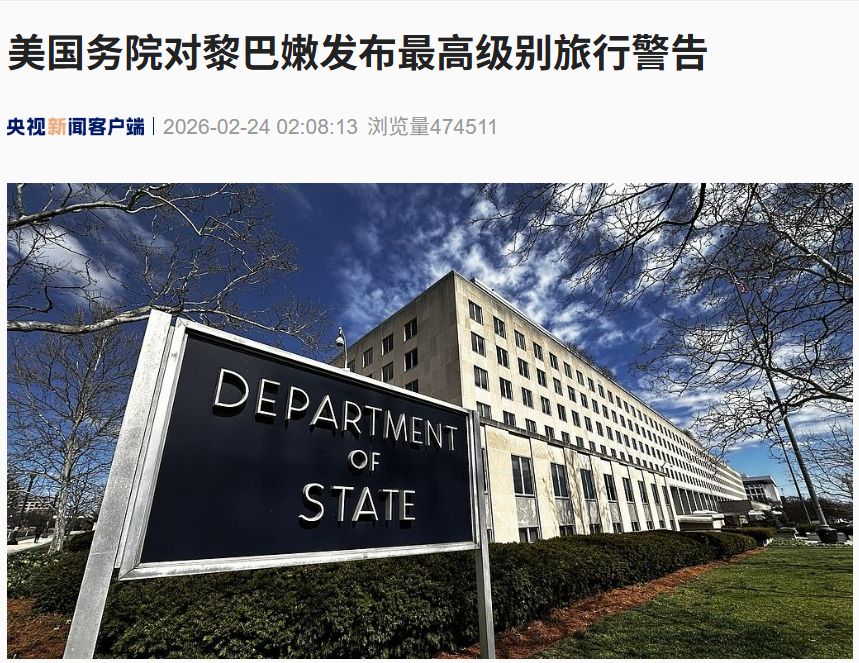 据央视新闻,当地时间2月23日,美国国务院将对黎巴嫩的旅行警告调升为“第四级:勿要前往”,这是美国务院有关旅行建议的最高级别警告。