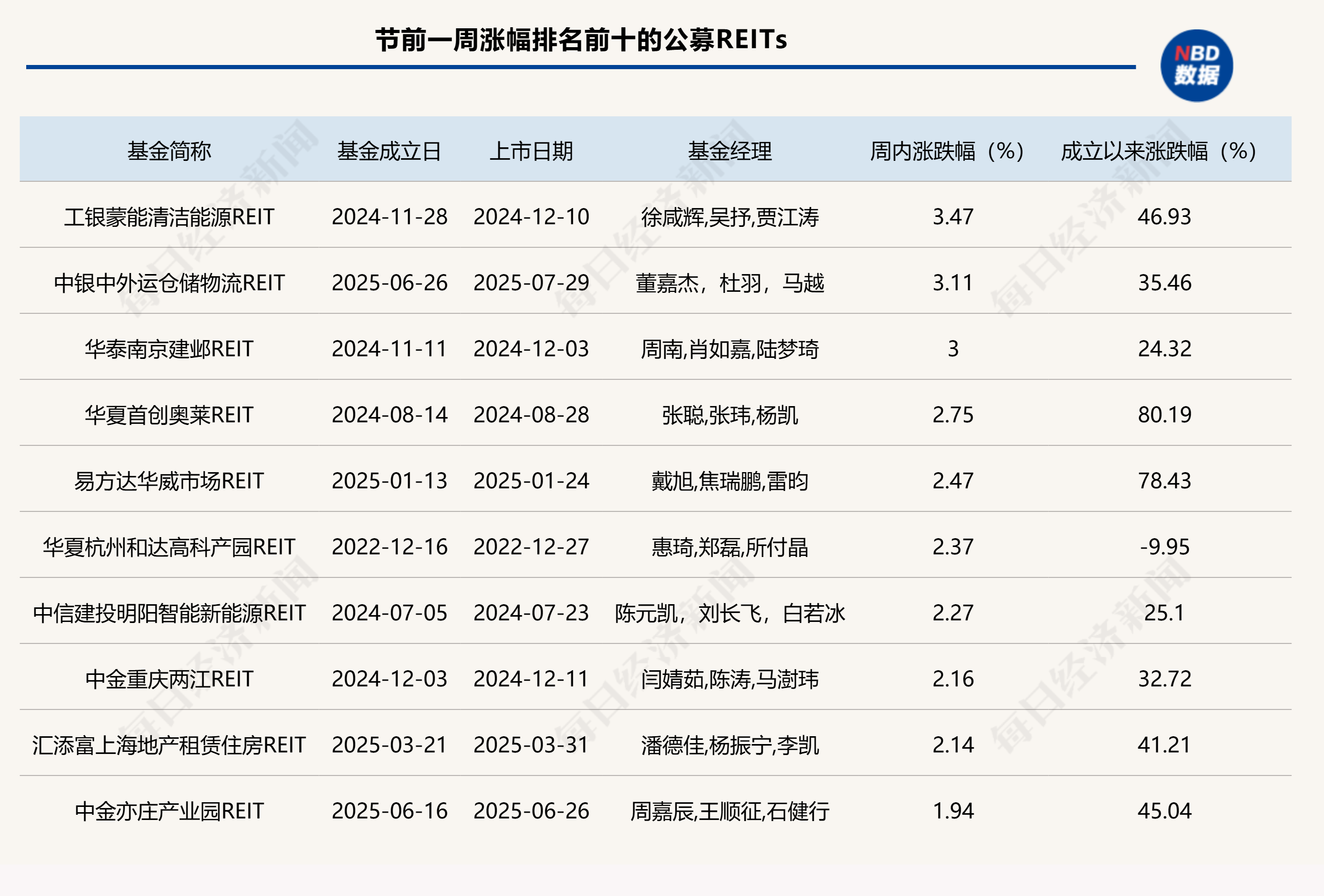 春节前一周(2月9日至2月13日),公募REITs市场回暖,数据中心、消费、能源等板块涨幅靠前。