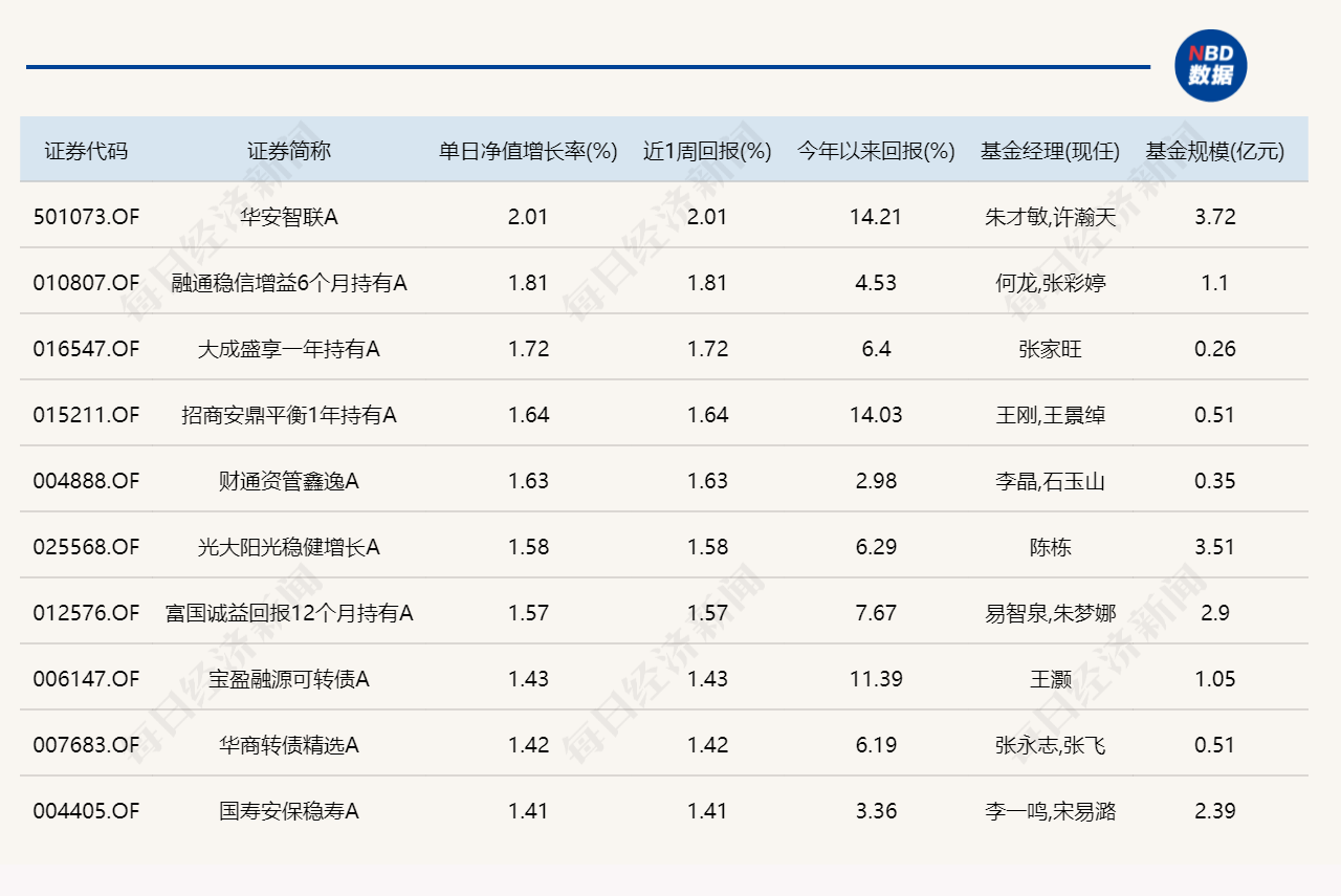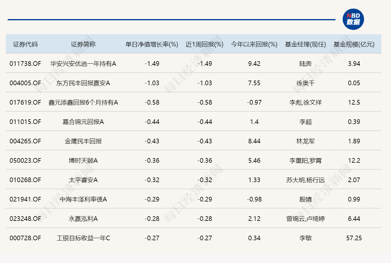 3.单日债基涨跌幅榜