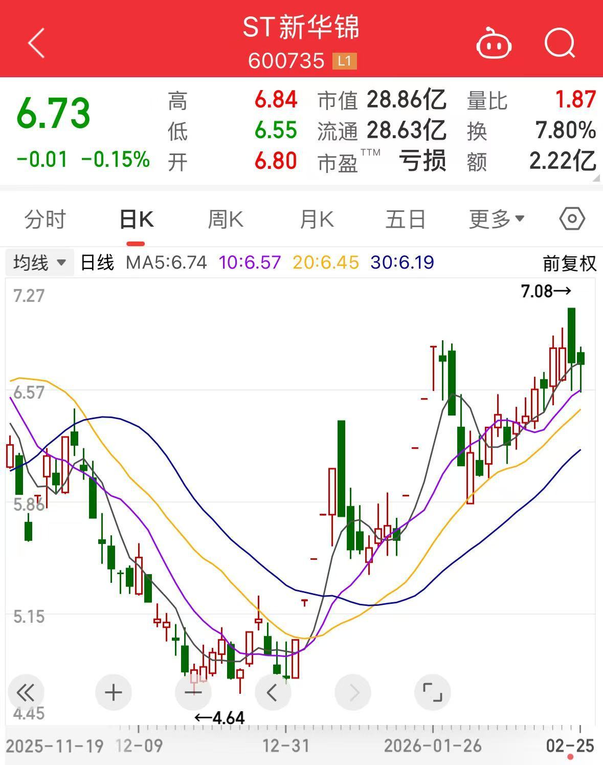 市场上,截至今日收盘,ST新华锦股价跌0.15%,市值28.86亿元。