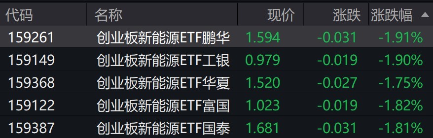 受盘面影响,创业板新能源相关ETF跌近2%。