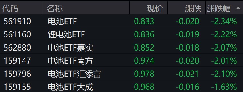 电池概念股走低,阳光电源、宁德时代、亿纬锂能跌超4%。
