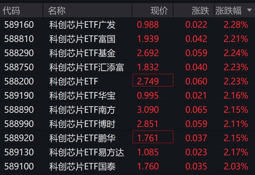 芯片概念股午后拉升,寒武纪-U涨超7%,拓荆科技涨超4%,海光信息、芯原股份涨超3%。