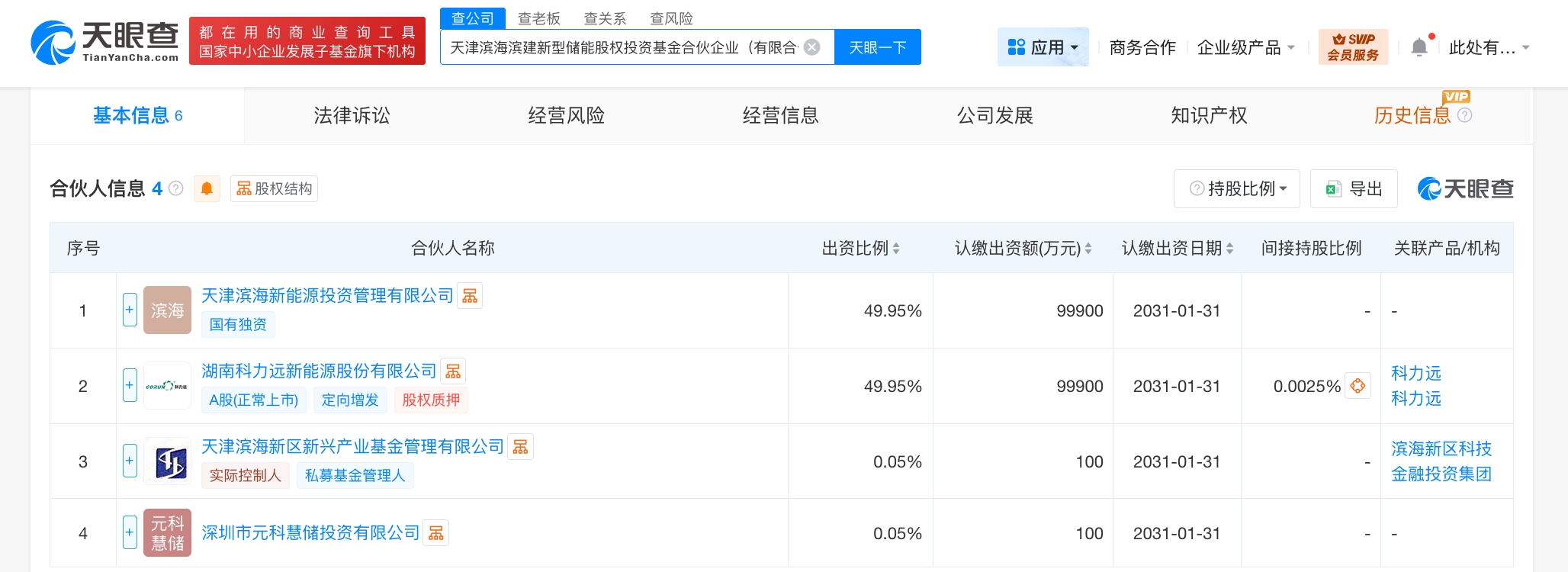 每经AI快讯,天眼查App显示,近日,天津滨海滨建新型储能股权投资基金合伙企业(有限合伙)成立,执行事务合伙人为天津滨海新区新兴产业基金管理有限公司,出资额20亿元人民币,经营范围为以私募基金从事股权投资、投资管理、资产管理等活动。合伙人信息显示,该基金由天津滨海新能源投资管理有限公司、科力远(600478)、天津滨海新区新兴产业基金管理有限公司、深圳市元科慧储投资有限公司共同出资。