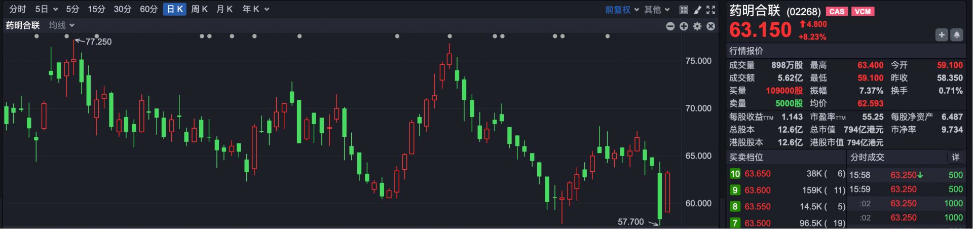 昨日调整的创新药板块今日集体反弹,其中药明合联(HK02268)涨超8%,基石药业涨超7%,康希诺生物涨超6%,昭衍新药、药明生物涨超5%。