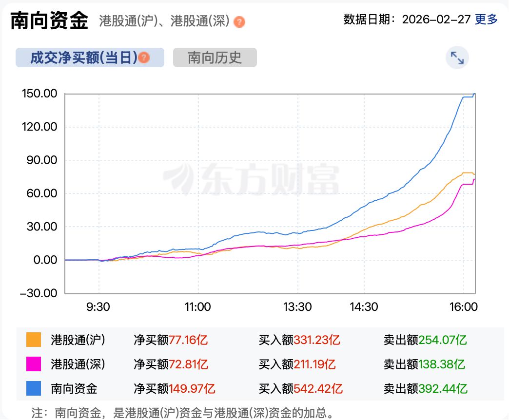资金方面,南向资金大举抄底。截至收盘,南向资金净买入港股达149.97亿港元。