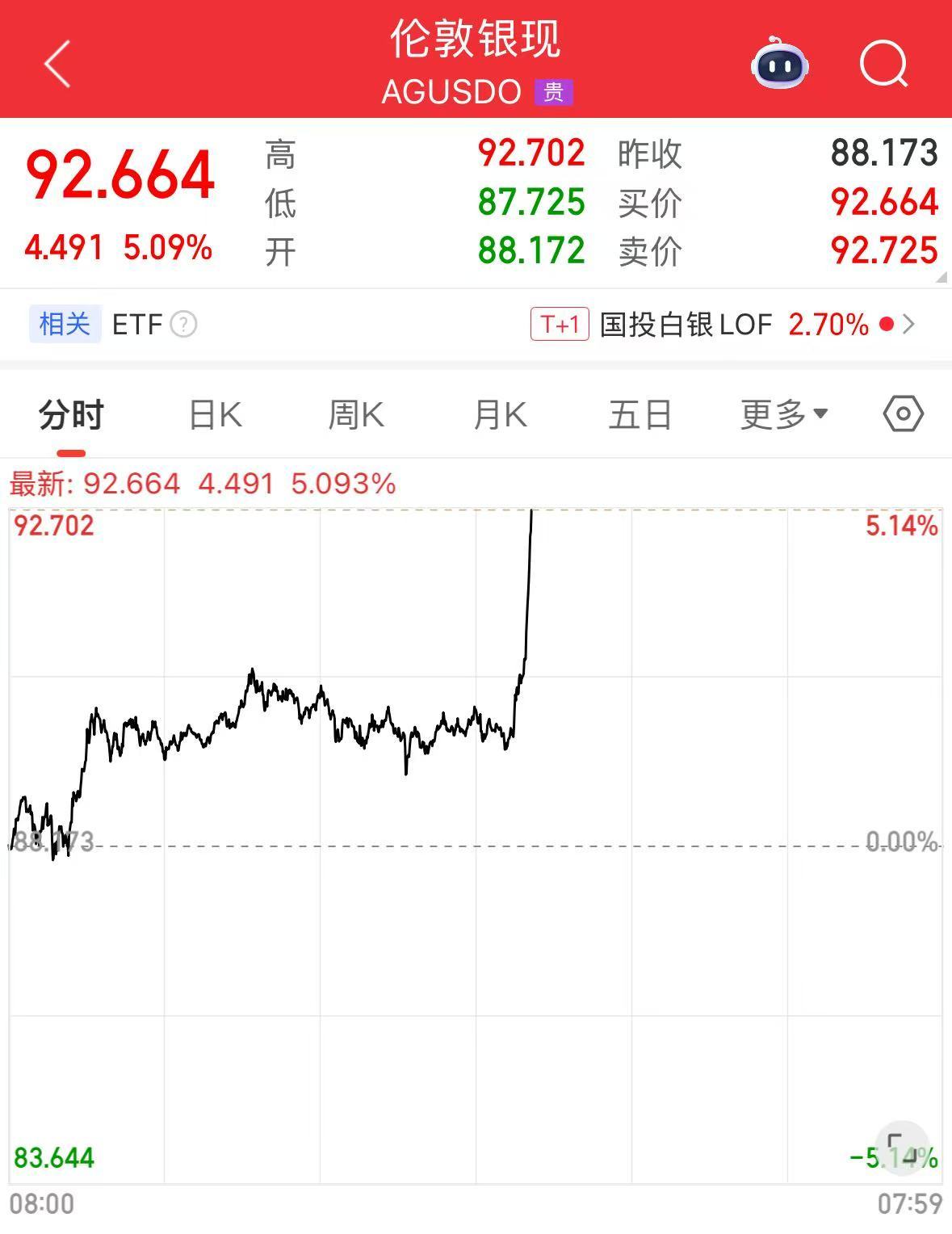 现货黄金、白银直线拉升。