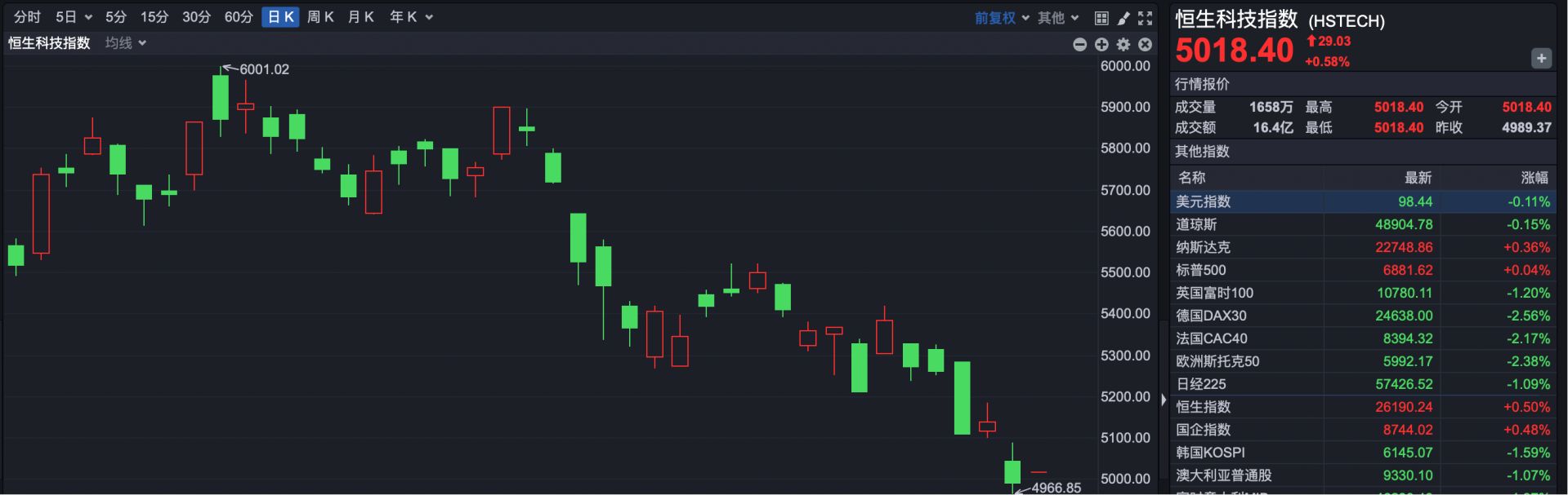 恒生科技指数开盘报5018.40点,上涨29.03点,涨幅0.58%。