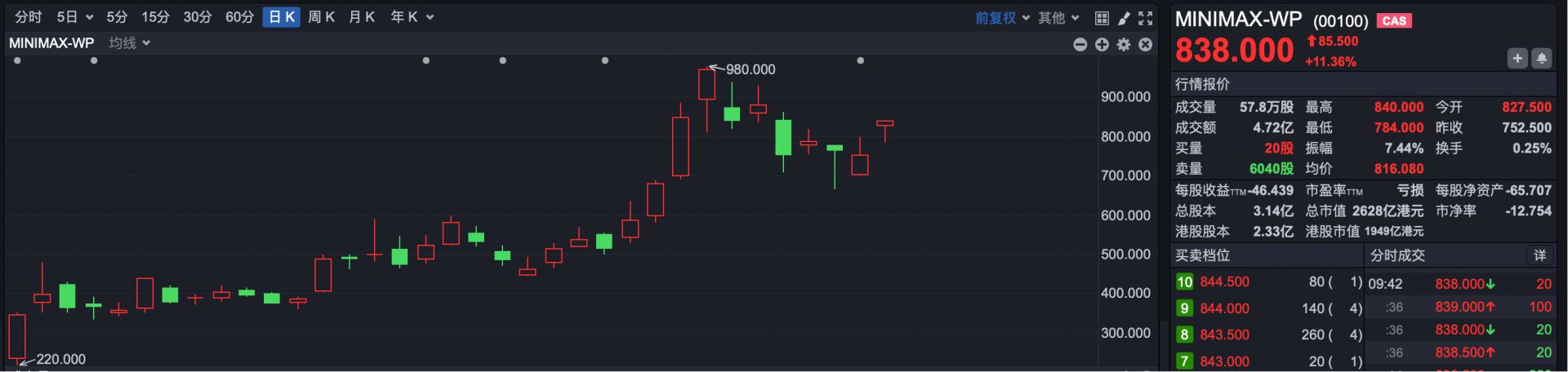 焦点公司方面,MINIMAX-WP(HK00100)公布2025年度财报,尽管去年净利润继续亏损,但营收同比大幅增长。今日早间,该公司涨超10%。