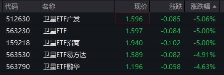 受盘面影响,卫星相关ETF跌约5%。