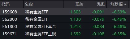 受盘面影响,稀有金属相关ETF跌超6%。