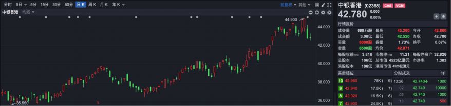 中银香港股价走势图