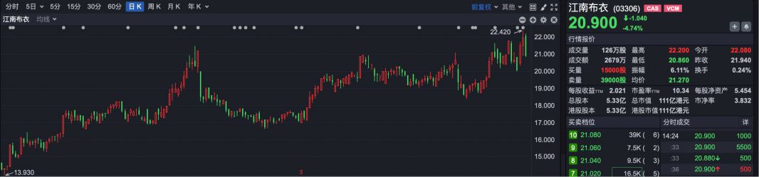 江南布衣股价走势图