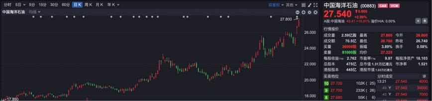 中国海洋石油股价走势图