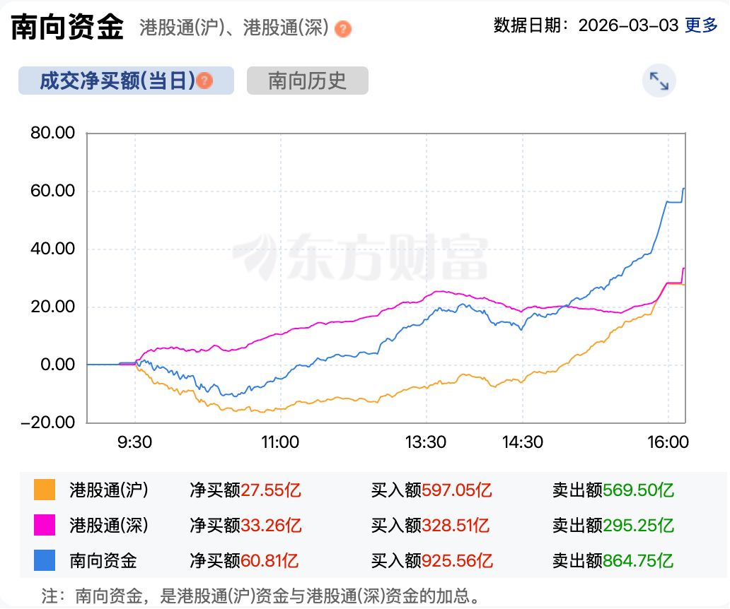 资金方面,南向资金继续抄底。截至收盘,南向资金净买入港股超60亿港元。