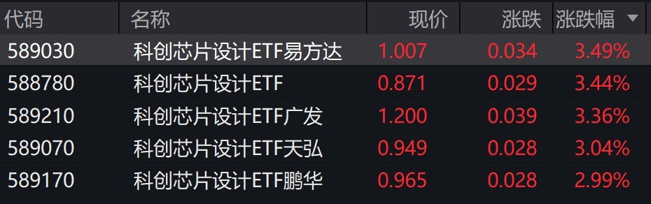 受盘面影响,科创芯片设计相关ETF涨超3%。