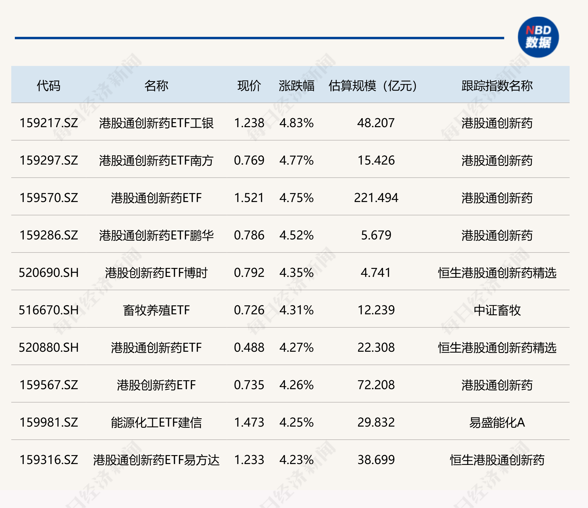ETF涨跌幅方面,港股创新药相关ETF涨超4%。