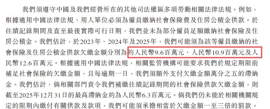 每经记者还注意到,报告期内,纳真科技未为部分雇员足额缴纳社保及住房公积金。据估算,报告期内公司可能须补缴的差额分别约为960万元、1090万元及1260万元,三年累计欠缴3310万元。若被要求补足,截至2025年底的滞纳金最高约630万元;若未按期缴纳,可能面临未缴金额一至三倍罚款。