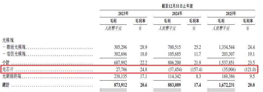 虽然纳真科技主营业务涉及当前二级市场火热的光通信概念,但《每日经济新闻》记者(以下简称“每经记者”)梳理该公司招股书发现,其在核心业务盈利能力、供应链独立性以及合规经营等方面存在诸多隐忧。例如,公司光芯片业务在2024年和2025年的毛利率连续为负且分别低于-100%;2025年的年内溢利大幅增长,在一定程度上依赖于一次性合营企业出售收益。