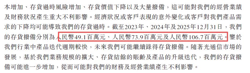 此外,纳真科技的整体存货拨备逐年上升,截至各报告期末分别达4910万元、7390万元及1.07亿元。招股书称,光芯片需求下降导致了相关存货拨备,进而增加了存货单位成本。