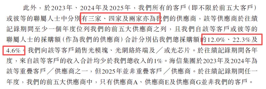 从收入贡献看,2023年来自这些重叠客户的收入占总收入比例高达50.6%,2024年下滑至15%,但2025年再次回升至49.3%。这表明,在2023年和2025年,公司均有约一半营收由具备供应商背景的实体贡献。