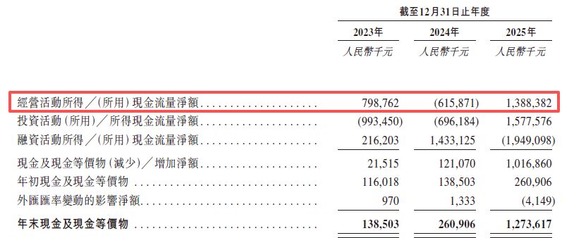 纳真科技报告期内的经营活动现金流曾出现大幅波动:2023年公司经营活动所得现金净额约为7.99亿元,但2024年转负至约-6.16亿元净流出,而2025年又恢复至约13.88亿元。