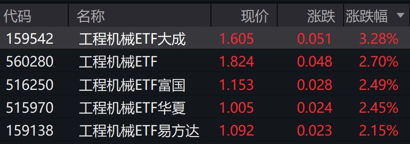受盘面影响,工程机械相关ETF涨超2%。