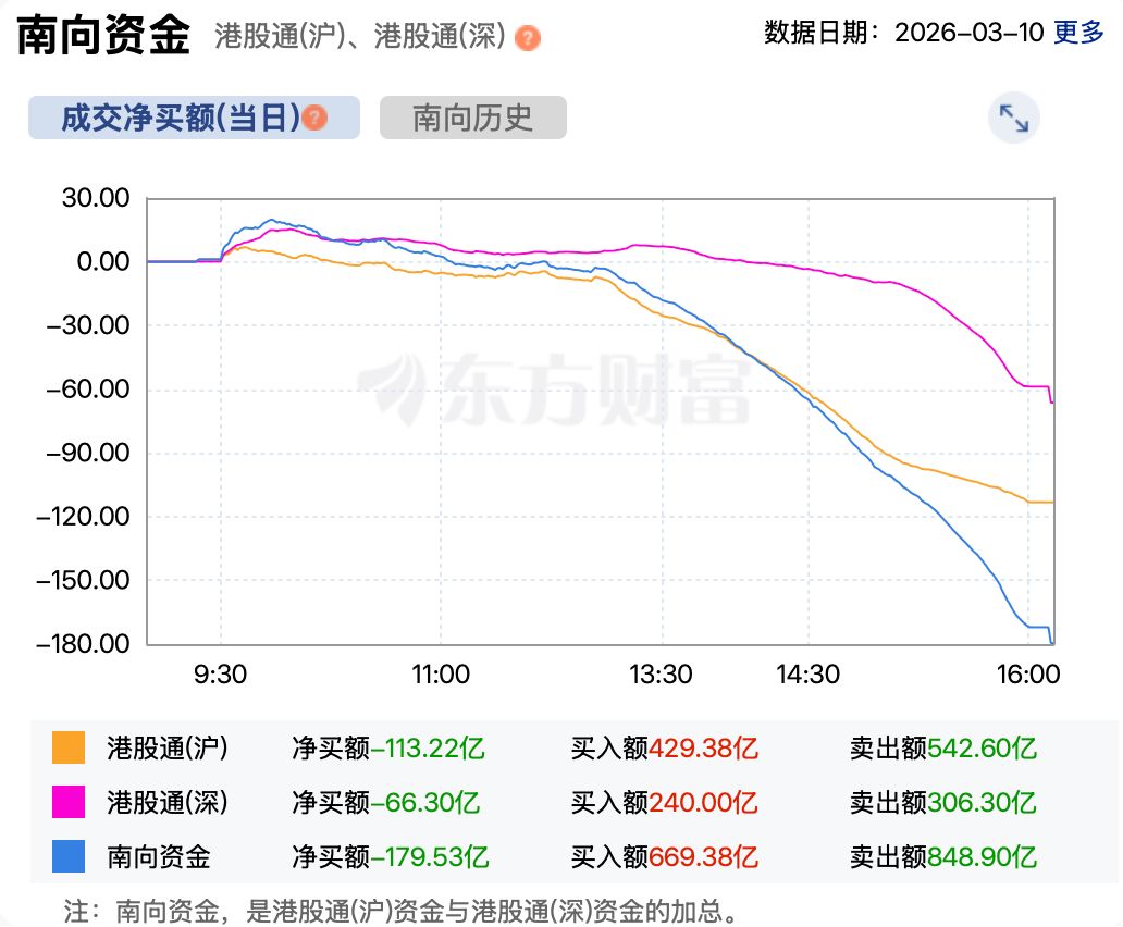 资金方面,昨日南向资金放天量净买入后,今日出现较大规模净卖出。截至收盘,南向资金净卖出港股达179亿港元。