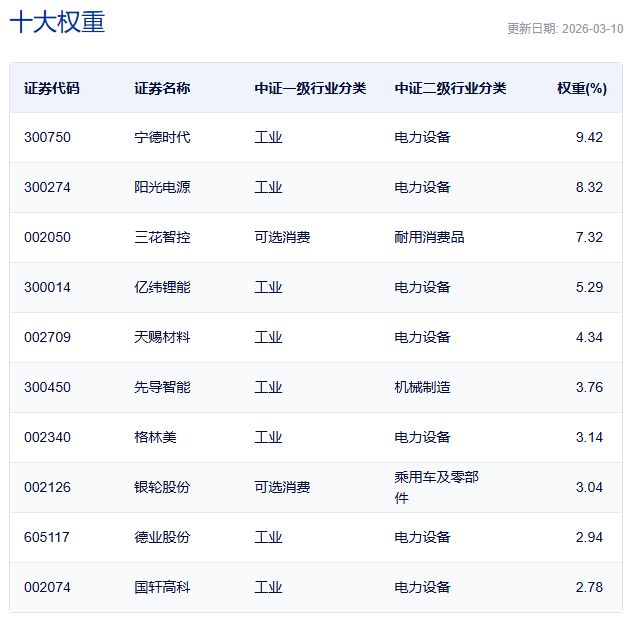 中证电池主题指数主要权重股