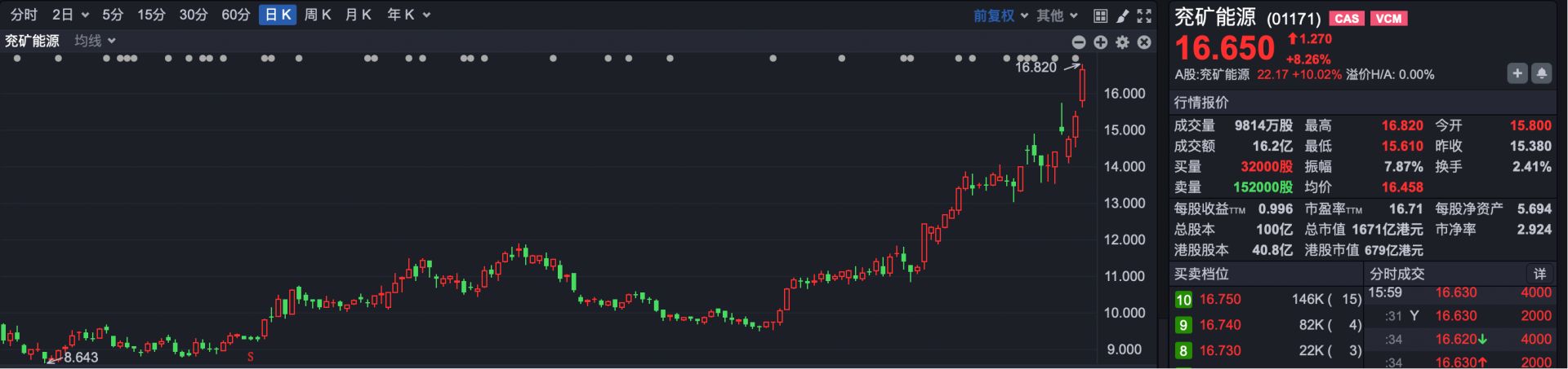 市场热点方面,煤炭板块强势,兖矿能源涨超8%,中煤能源、中国秦发涨超4%,中国神华涨超1%。