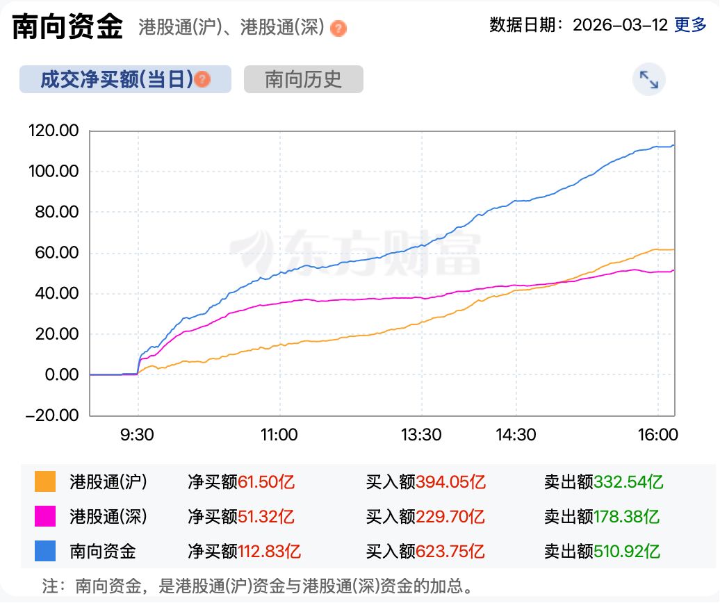 资金方面,截至收盘,南向资金净买入港股超112亿港元。