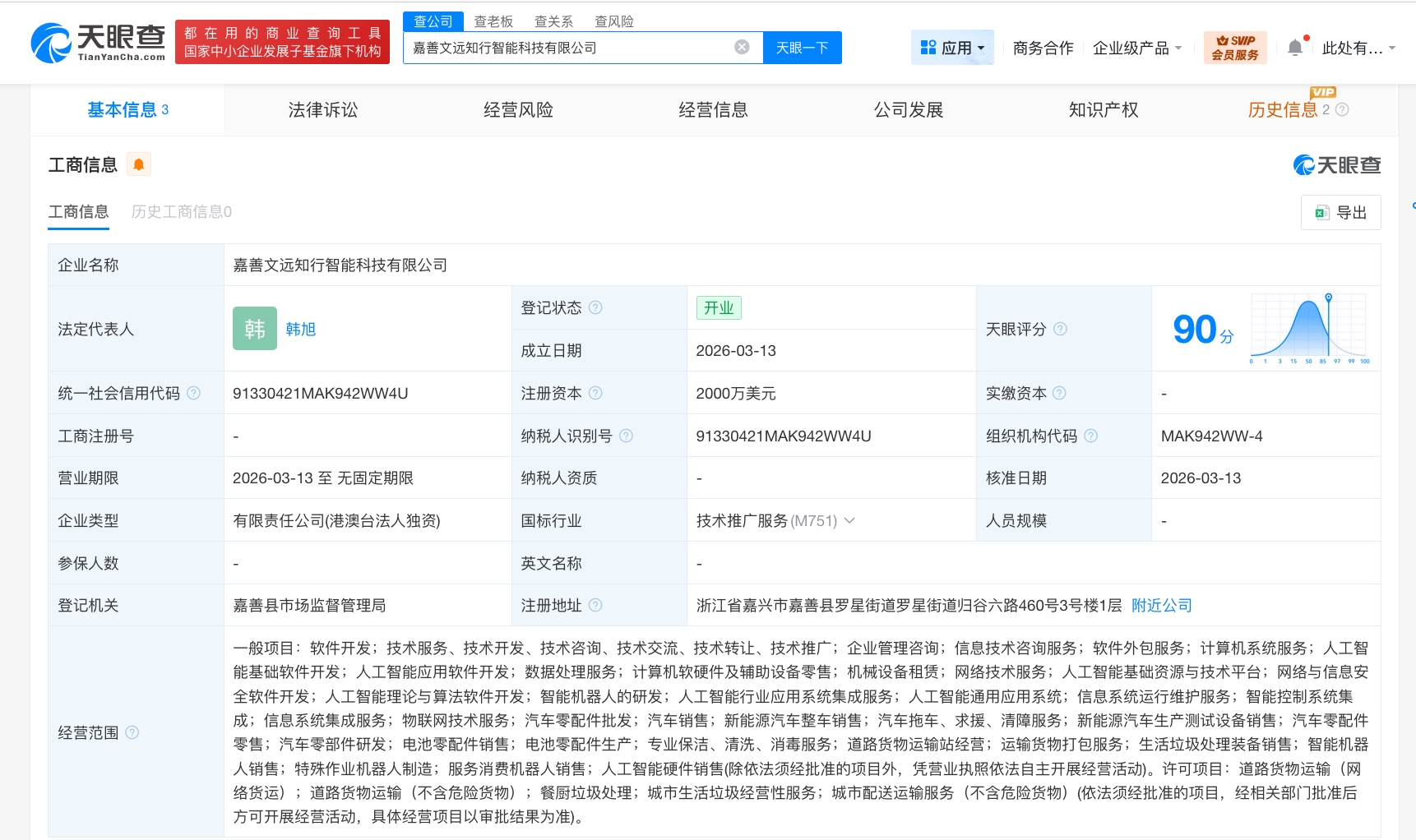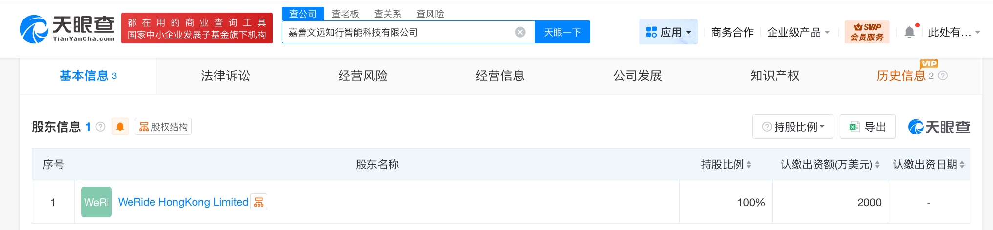 每经AI快讯,天眼查工商信息显示,近日,嘉善文远知行智能科技有限公司成立,法定代表人为韩旭,注册资本2000万美元,经营范围包括软件开发、人工智能基础软件开发、人工智能应用软件开发、智能机器人的研发、汽车销售、新能源汽车整车销售等。股东信息显示,该公司由文远知行旗下WeRideHongKongLimited全资持股。