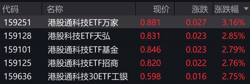 受盘面影响,港股通科技相关ETF涨超2%。