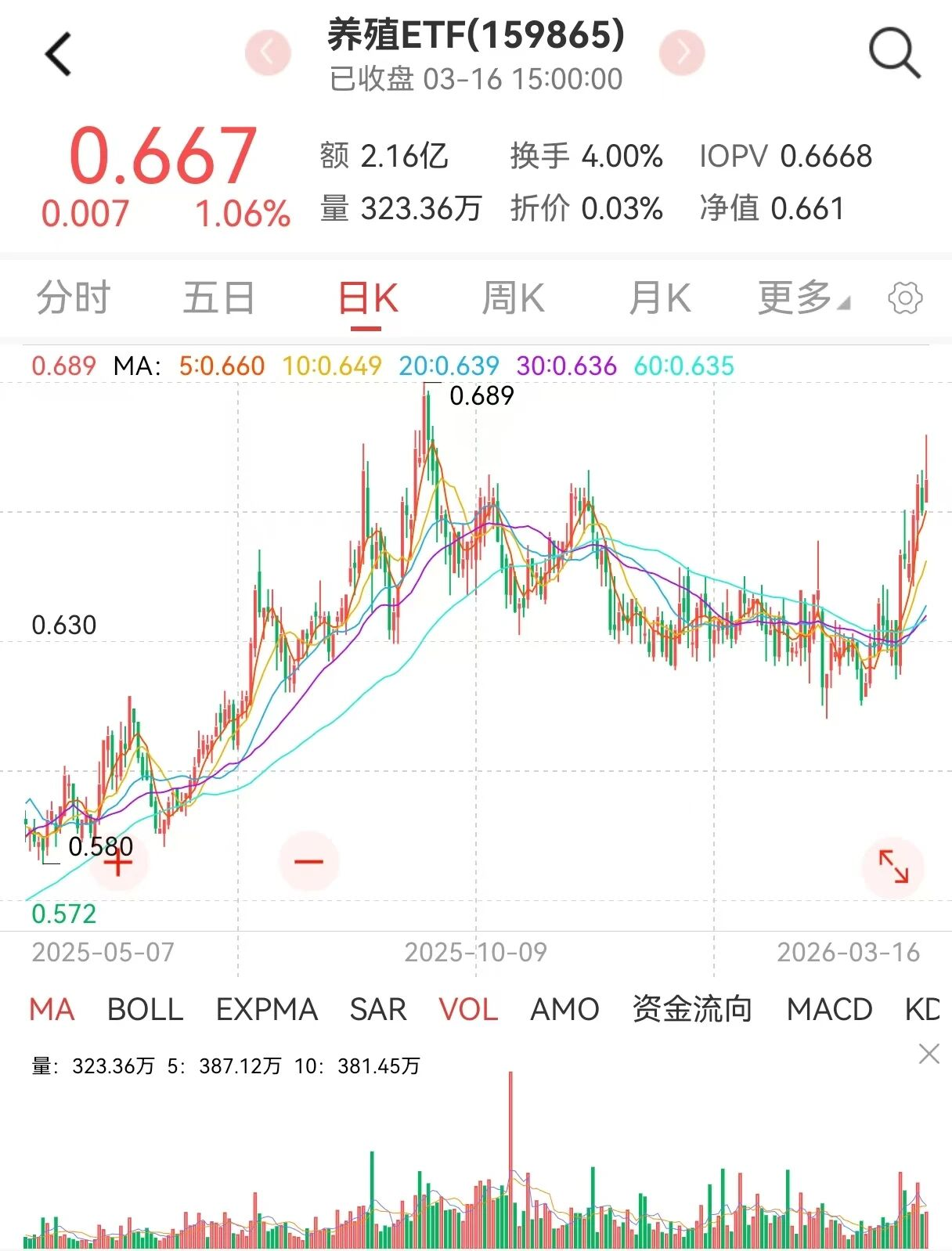 3月16日,养殖板块延续近期相对强势的表现,养殖ETF(159865)上涨1.06%。本轮养殖板块反弹的核心逻辑在于生猪产能去化进入加速期,叠加政策调控力度加码。