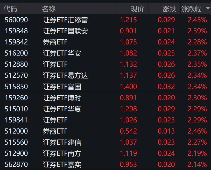 受盘面影响,证券相关ETF涨超2%。