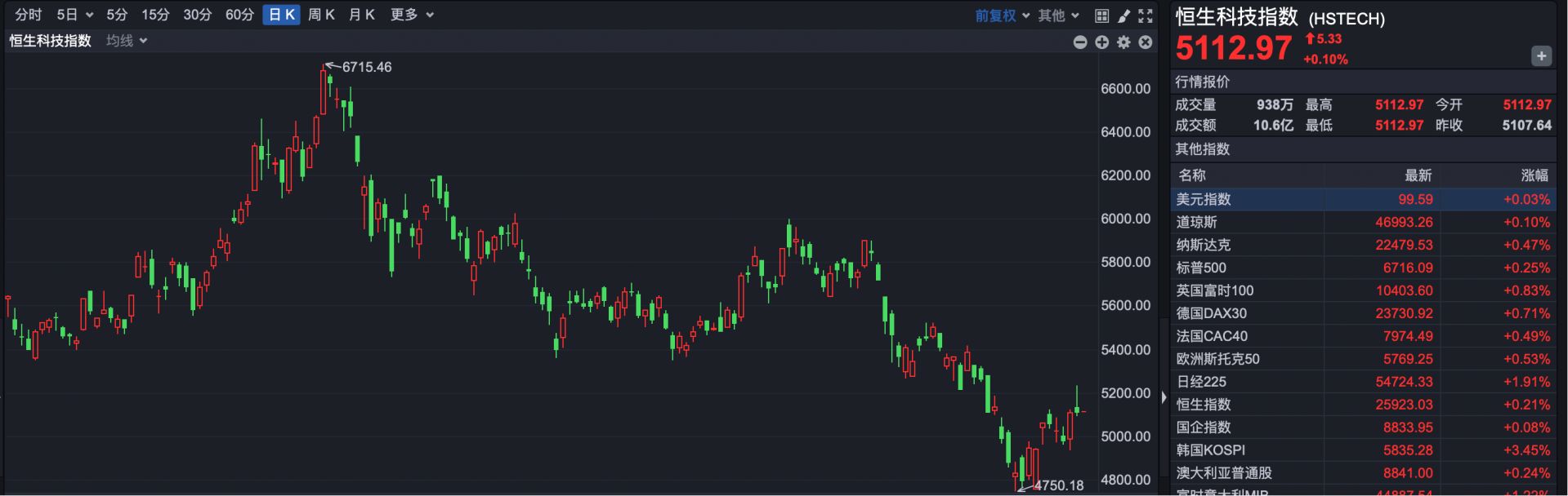 恒生科技指数开盘报5112.97点,上涨5.33点,涨幅0.10%。