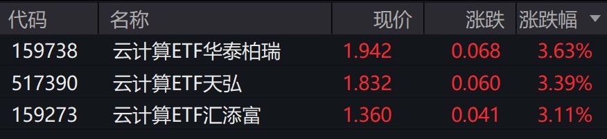 受盘面影响,云计算相关ETF涨超3%。