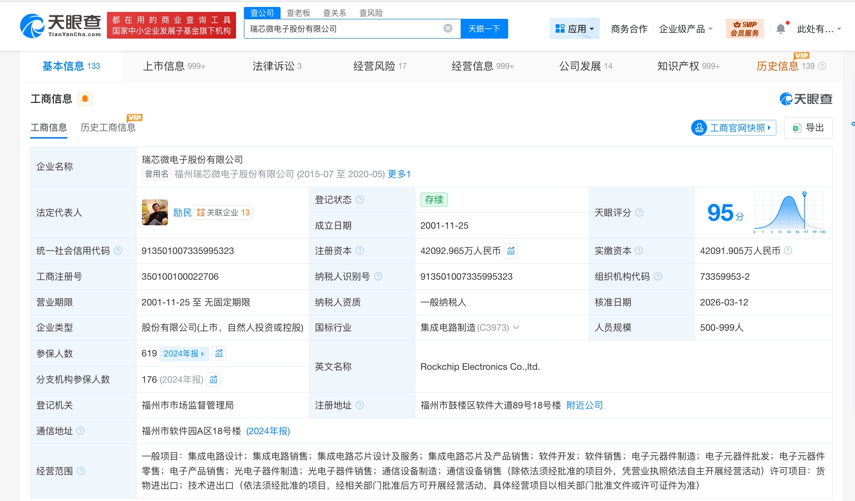 每经AI快讯,天眼查工商信息显示,近日瑞芯微(603893)发生工商变更,注册资本由约4.18亿元人民币增至约4.21亿元人民币。瑞芯微电子股份有限公司成立于2001年11月,法定代表人为励民,经营范围含集成电路设计、集成电路销售、集成电路芯片设计及服务、集成电路芯片及产品销售等。股东信息显示,该公司由励民、黄旭等共同持股。