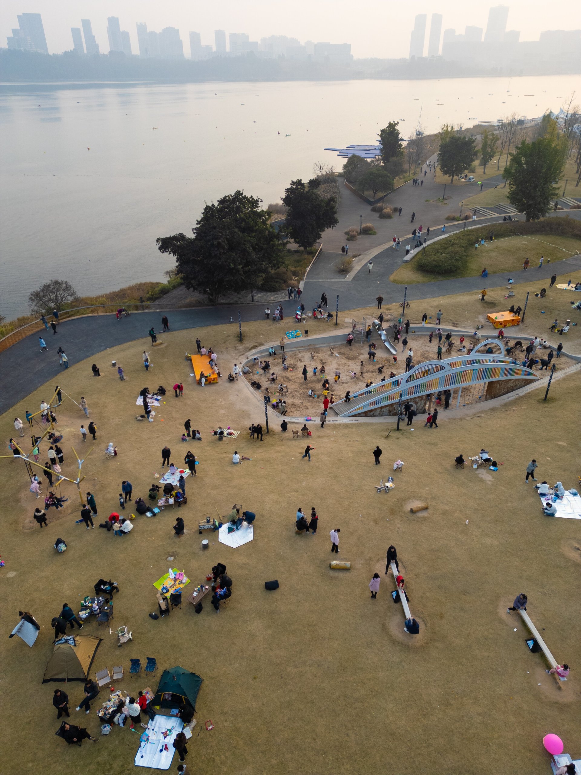 冬日的成都兴隆湖游人如织 视觉中国图