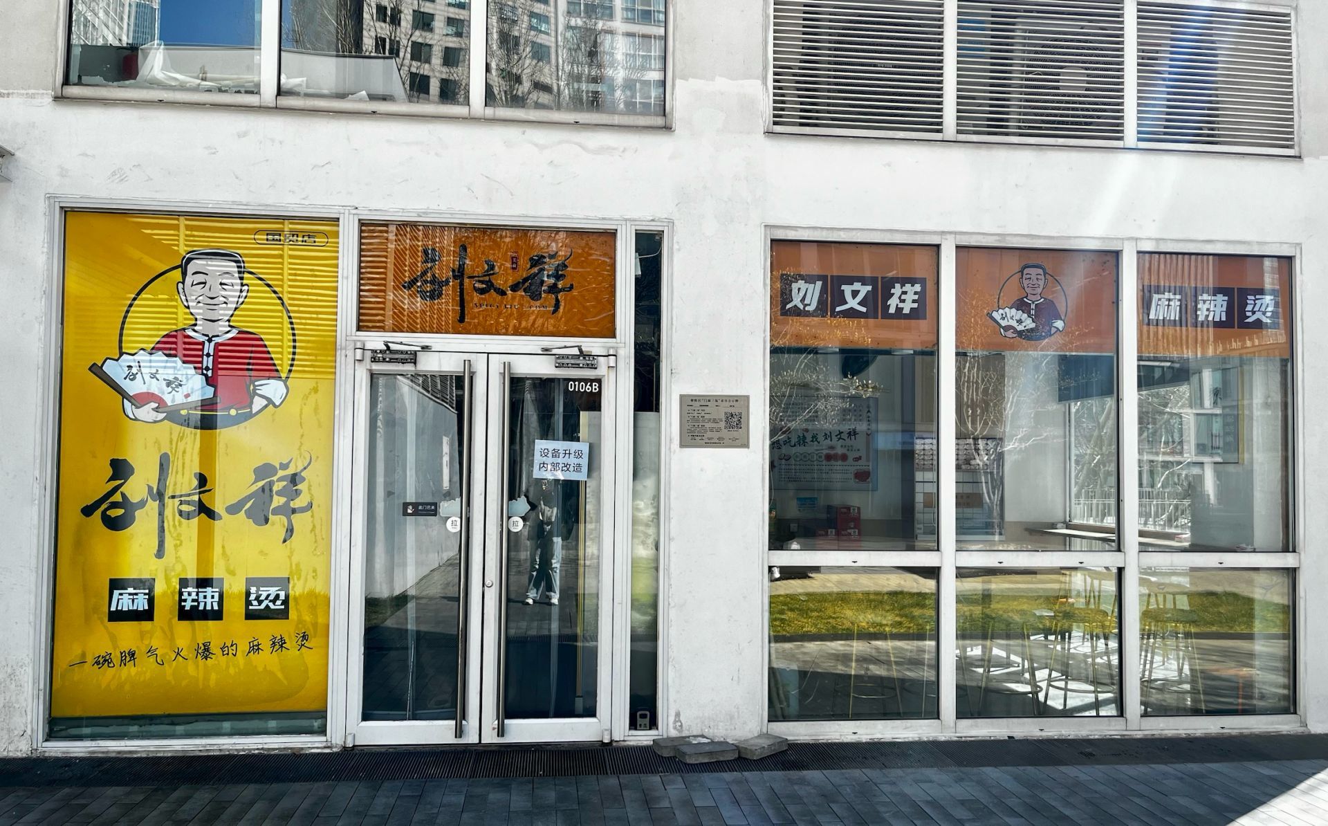 暂停营业的刘文祥麻辣烫国贸店 图片来源:每经记者 郑欣蔚 摄