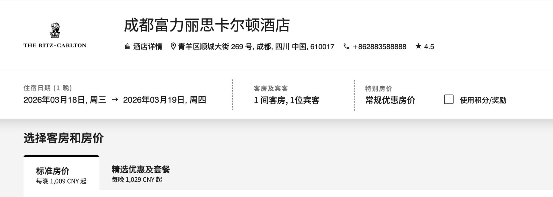 图片来源: 成都富力丽思卡尔顿酒店官网截图