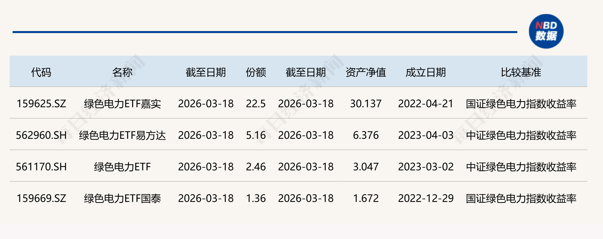Wind数据显示,目前名称中包含“绿色电力”的4只ETF分别如下: