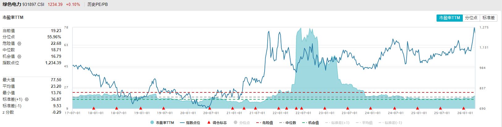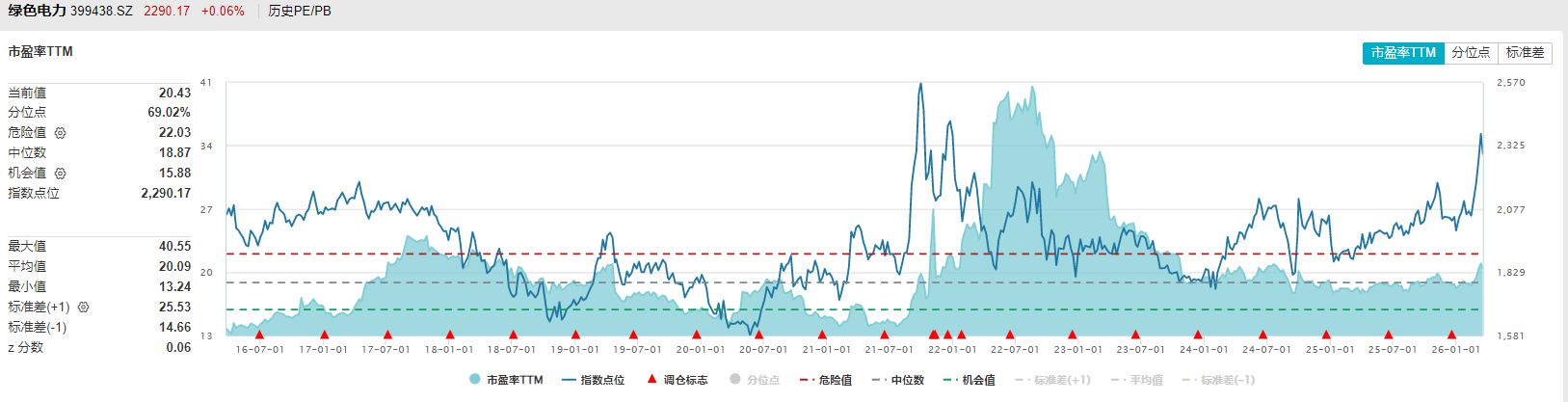 最后再来看两个指数目前的估值水平,wind数据显示,中证绿色电力指数目前的市盈率TTM处在近10年55%左右分位,属于中等水平,而国证绿色电力指数目前的市盈率TTM处在接近10年70%左右分位,属于中等偏上位置。