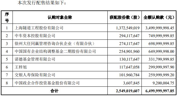 需要指出的是,中国能建此次定增发行的股份总数约25.49亿股,也就是说,光隧道股份一家就占了53.85%。