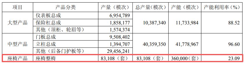 《每日经济新闻》记者还注意到,新泉股份座椅产品的设计产能为36万套,但2025年的实际产量仅为8.31万套,产能利用率仅为23.09%。