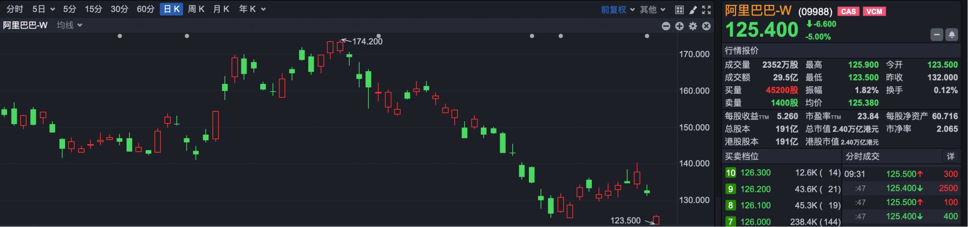 焦点公司方面,阿里巴巴-W(HK09988)昨日公布财报之后,今日低开6.44%,随后股价有所回升,截至发稿,跌幅收窄至5%左右。