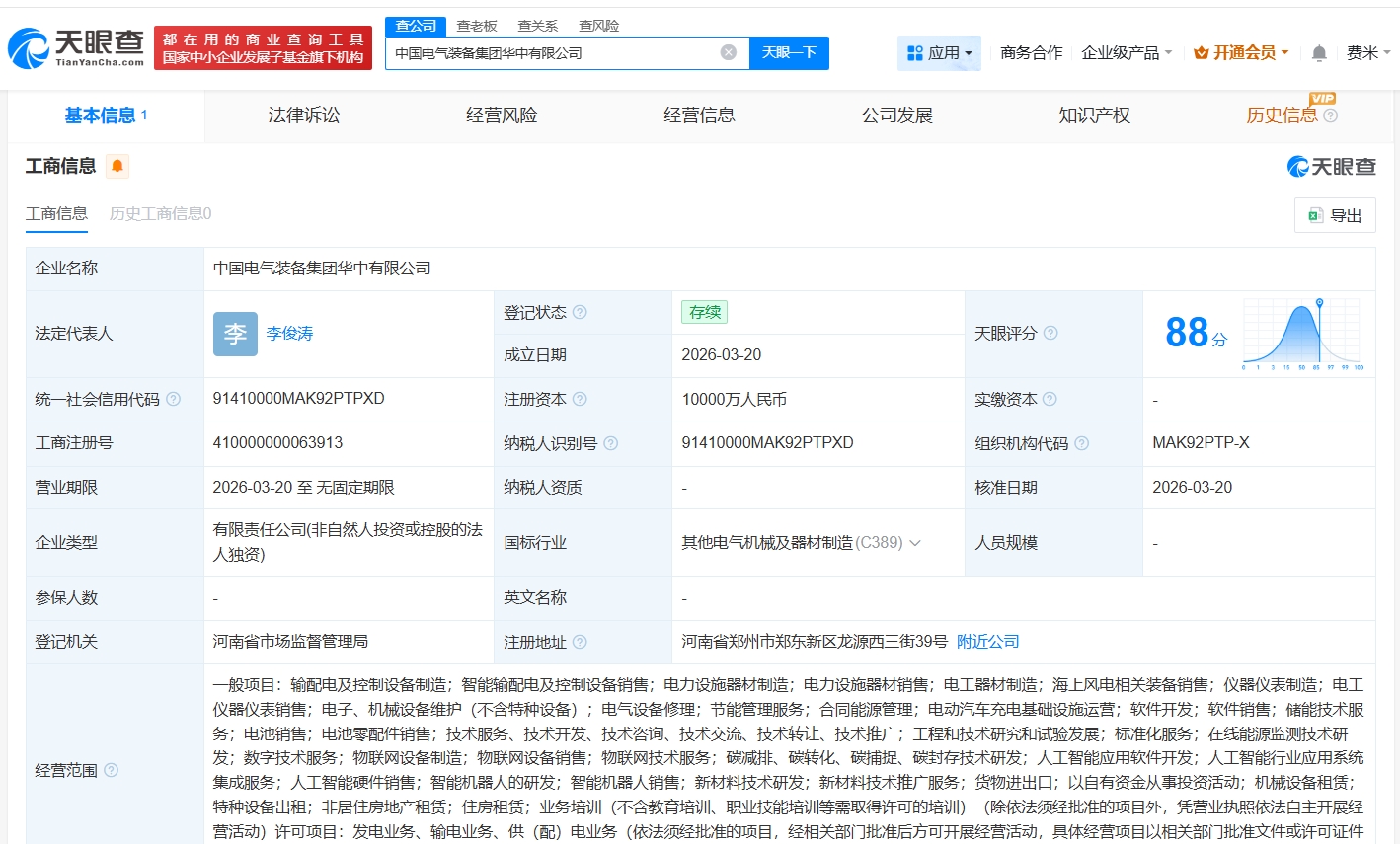 每经AI快讯,天眼查App显示,近日,中国电气装备集团华中有限公司成立,法定代表人为李俊涛,注册资本1亿元人民币,经营范围含输配电及控制设备制造、智能输配电及控制设备销售、电力设施器材制造等。股东信息显示,该公司由中国电气装备集团有限公司全资持股。