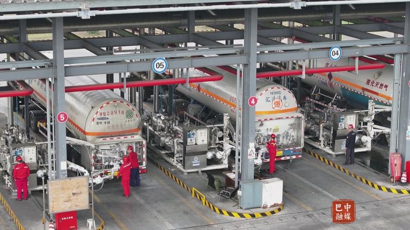 在平昌华油中蓝公司,大型槽罐车正在LNG加注站排队等待