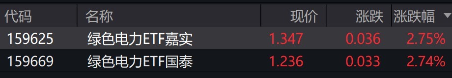 受盘面影响,绿色电力相关ETF涨超2%。