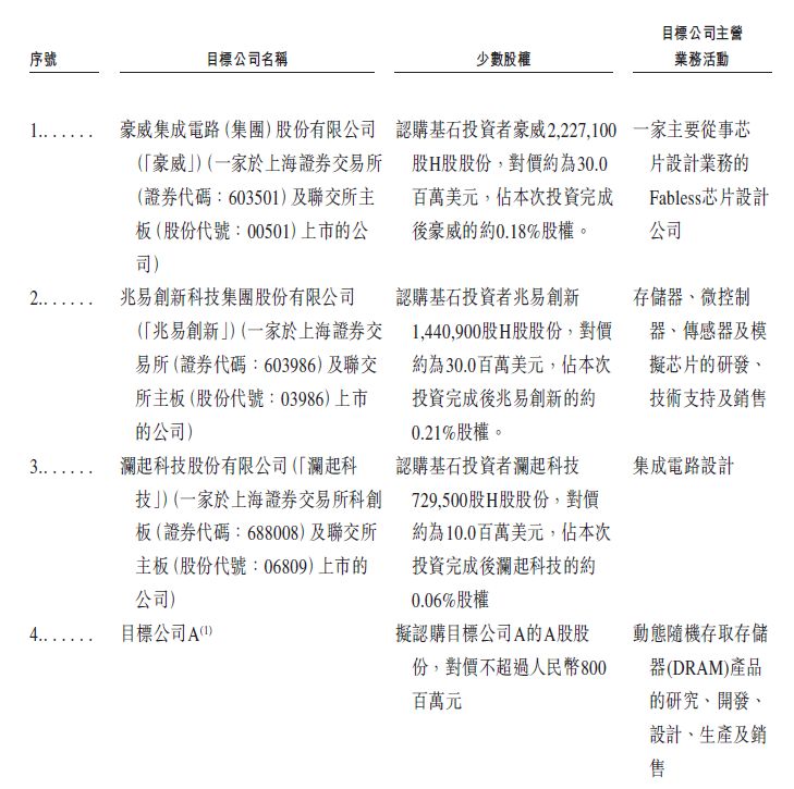 2025年底以来,公司产业链对外投资的节奏进一步加快。招股书显示,华勤技术作为基石投资者,接连认购了多家同业上市公司的H股股份。其中,公司认购了芯片设计企业豪威集团(HK00501)222.71万股H股股份,对价约为3000万美元,占投资完成后豪威约0.18%的股权;认购了兆易创新(HK03986)144.09万股H股股份,对价同样约为3000万美元,占其约0.21%的股权;认购了澜起科技(HK06809)72.95万股H股股份,对价约为1000万美元,占其约0.06%的股权。